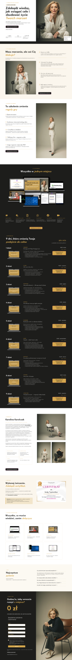 Karolina chciała stworzyć landing page dla swojego bezpłatnego, 9-dniowego szkolenia