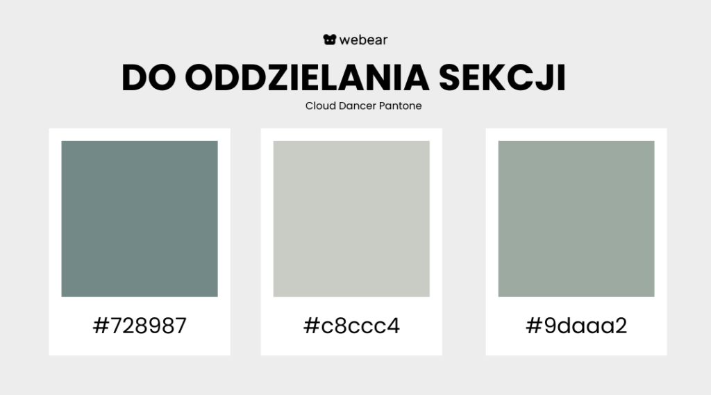 Zgaszone tony, takie jak #C8CCC4, #9DAAA2 czy #728987, możesz wykorzystać do: